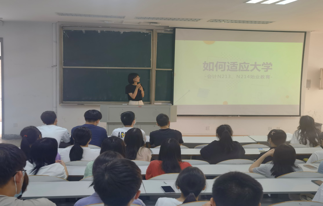 为教育和引导新生尽快适应大学生活,明确学习目的,了解专业情况,增强学习自觉性和主动性,2021年9月26日下午,会计学专业在教一153教室举行了2021级新生始业教育活动。始业教育活动由会计学专业负责人姚瑞红主持,2021级全体新生、专业教师、专职辅导员参加了本次活动。