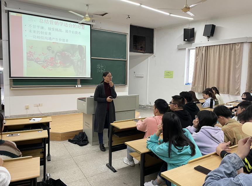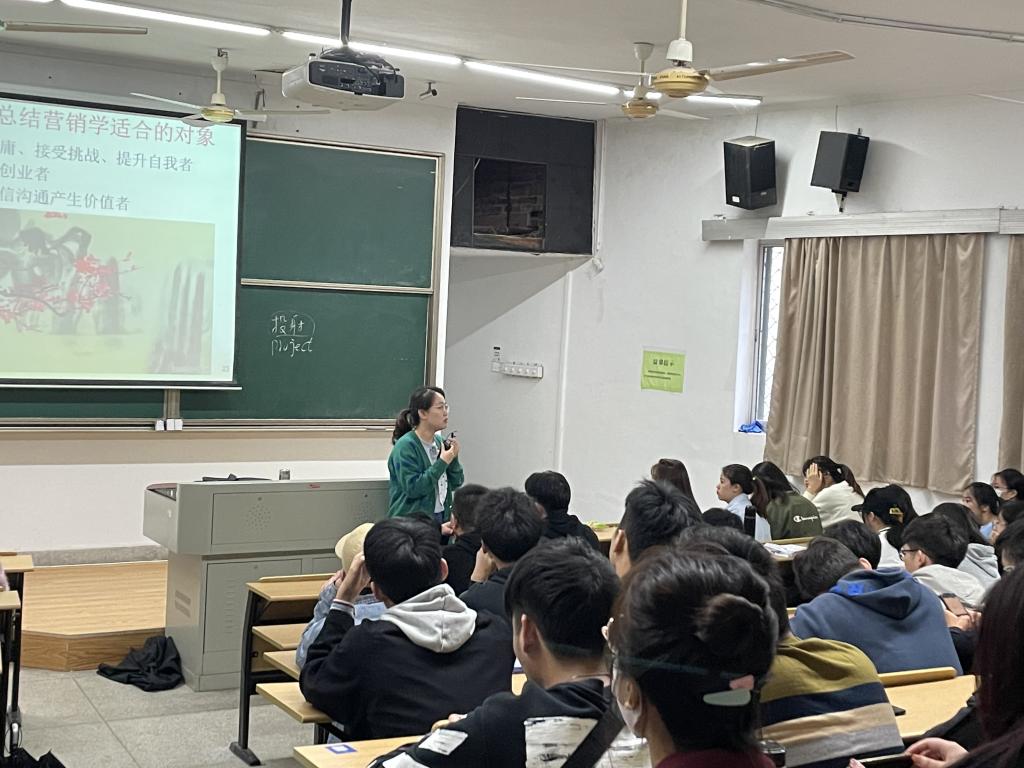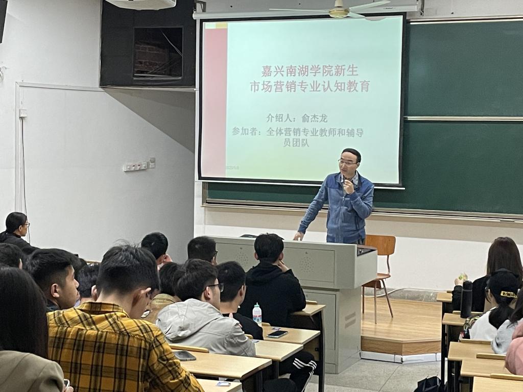 首先,俞杰龙老师围绕着“专业成才,精神成人”主题系统地介绍了市场营销专业的发展历史、培养方向、专业特色、专业师资力量及课程体系,增强新生对专业的认识,了解专业的培养方案。同时,以两名专业优秀毕业生为例,让学生了解市场营销专业的就业前景及就业方向,引导学生在大学期间应发现自身优势,提高核心竞争力,做好大学生涯及职业生涯规划。