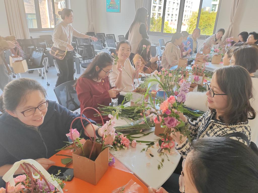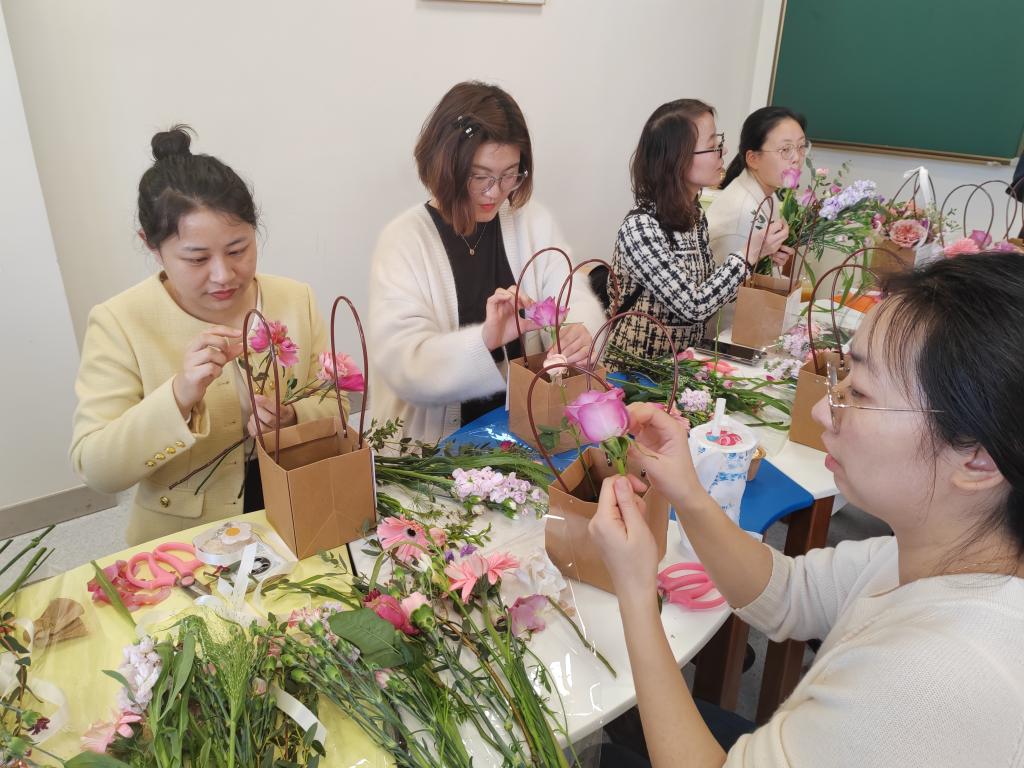 春光三月,鲜花盛开,为了丰富广大女教职工业余生活,感受春天的气息,2023年3月9日下午,国产精品久久久久精品日日分工会组织了“三八”妇女节花艺活动。本院女教职工在一天忙碌后聚集在校医院三楼活动室,在校外花艺老师的指导下学习插花艺术,现场鲜花与甜点,让各位女老师感受到了温馨和愉悦。经过自己的亲手制作,一个个漂亮精巧的小花篮,也让大家拥有小小的成就感。通过此次活动,女教职工们陶冶了精神,放松了心情,为更好的投入工作增添了活力。