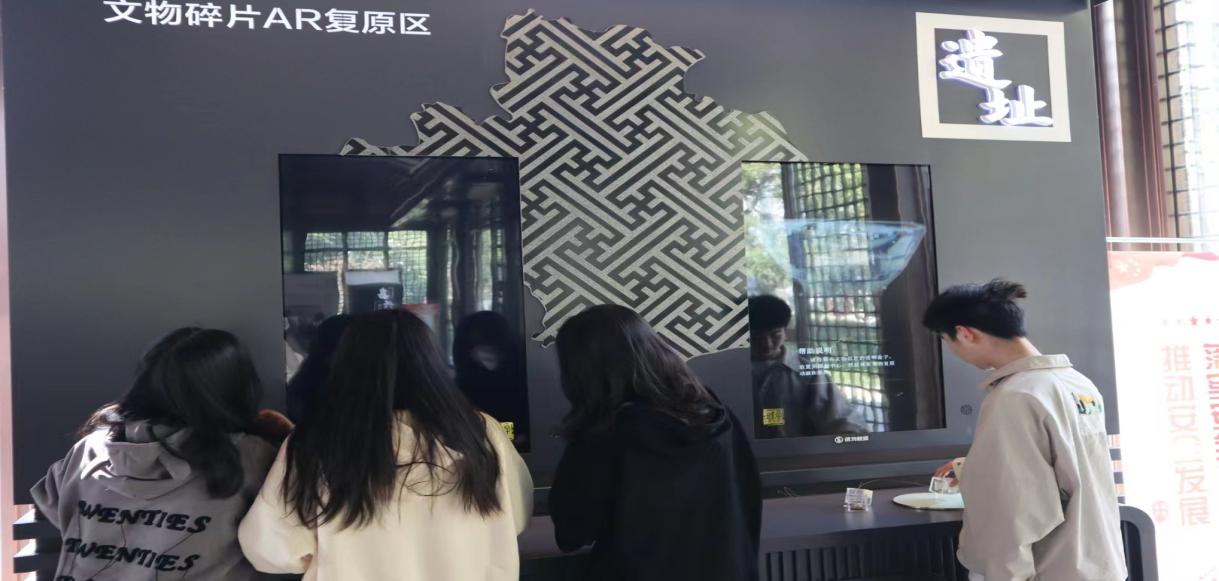 社团成员在会长带领下,有序进入嘉兴起义史料陈列馆。嘉兴起义史料陈列馆是全国第16个民革党史教育基地、浙江唯一民革党史教育基地。在史料馆,社团成员跟着讲解员的步伐,驻足每一件文物前认真观赏,当社团成员看到在教科书上出现过的贾亦斌同志时,对其英勇事迹不禁得再次肃然起敬。其中史料陈列馆里“文物碎片AR复原区”及“AR官服换装”是最受欢迎的,成员们争相体验文物修复,感受到了科技与红色文化相结合带来的魅力。