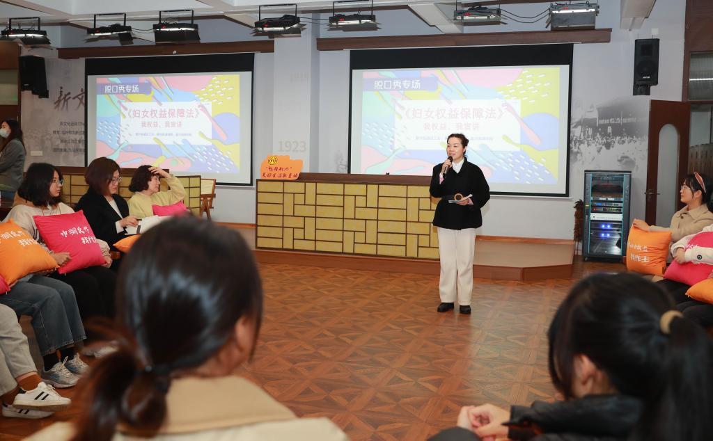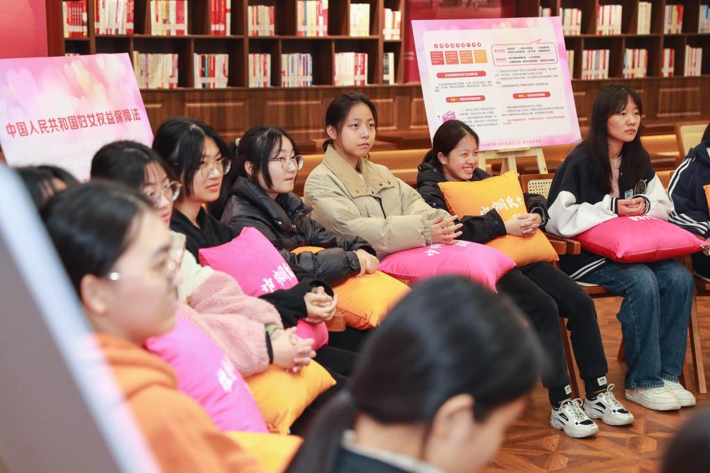 “没有交付的承诺都是空!”“当有人顶着你辅导员、老师的头像姓名来找你要钱的时候,一定要留个心眼!”“我从不认为高学历的人就不会被骗,时代在快速发展,我们面对的不再是一个个的诈骗分子,而是由一堆诈骗分子组成的诈骗集团,他们有组织有纪律,智商极高,而且还比我们努力,比我们卷,有话术,有剧本,深知你我人性的弱点,比现在的‘剧本杀’都让人沉浸式投入。”随着宣讲员的沉浸式“脱口秀”,同学们也逐渐对新修订的妇女权益保障法有了进一步的了解和掌握,对今后如何贯彻好妇女权益保障法有了更加清晰的方向,对如何维护好自身的合法权益也有了更加明确的思路。