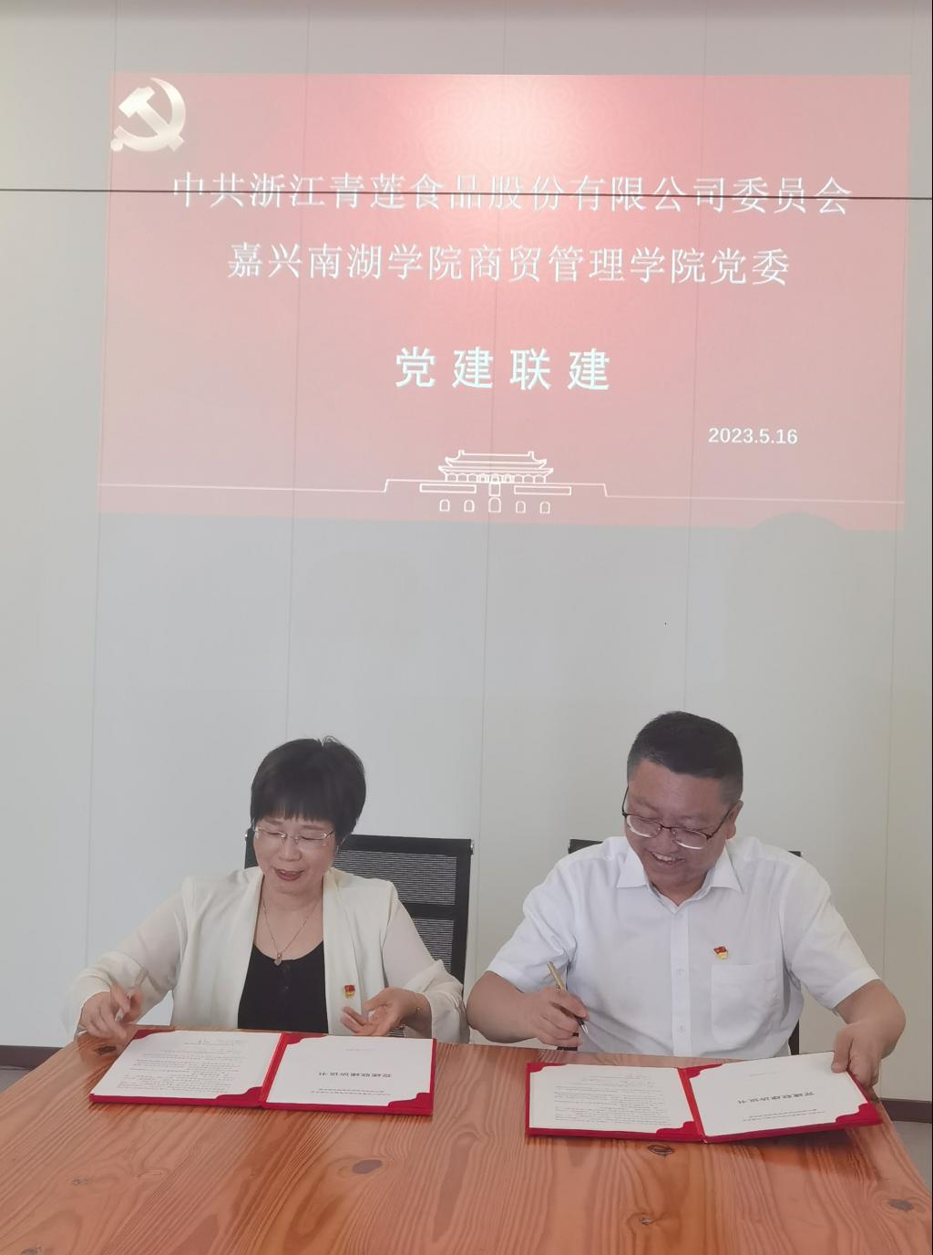 为牢牢把握高质量发展工作主线,强化党建助力共富启航,5月16日,嘉兴南湖学院国产精品久久久久精品日日党委副书记刘勇一行赴浙江青莲食品股份有限公司,签订“三先联创促提升,党建联建促发展”党建联建协议。