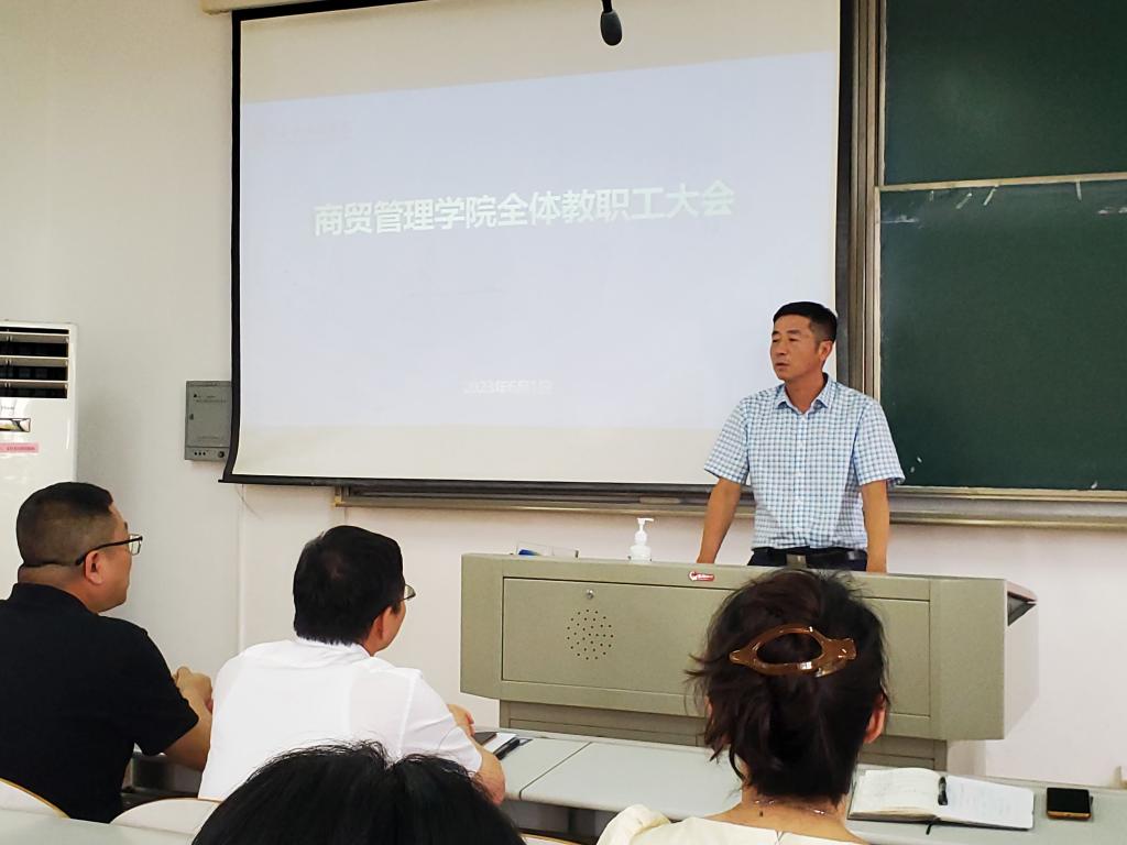 2023年6月1日下午,国产精品久久久久精品日日在教一403召开全体教职工大会。校党委委员、组织部部长庄应强出席大会,国产精品久久久久精品日日党委副书记刘勇主持会议。