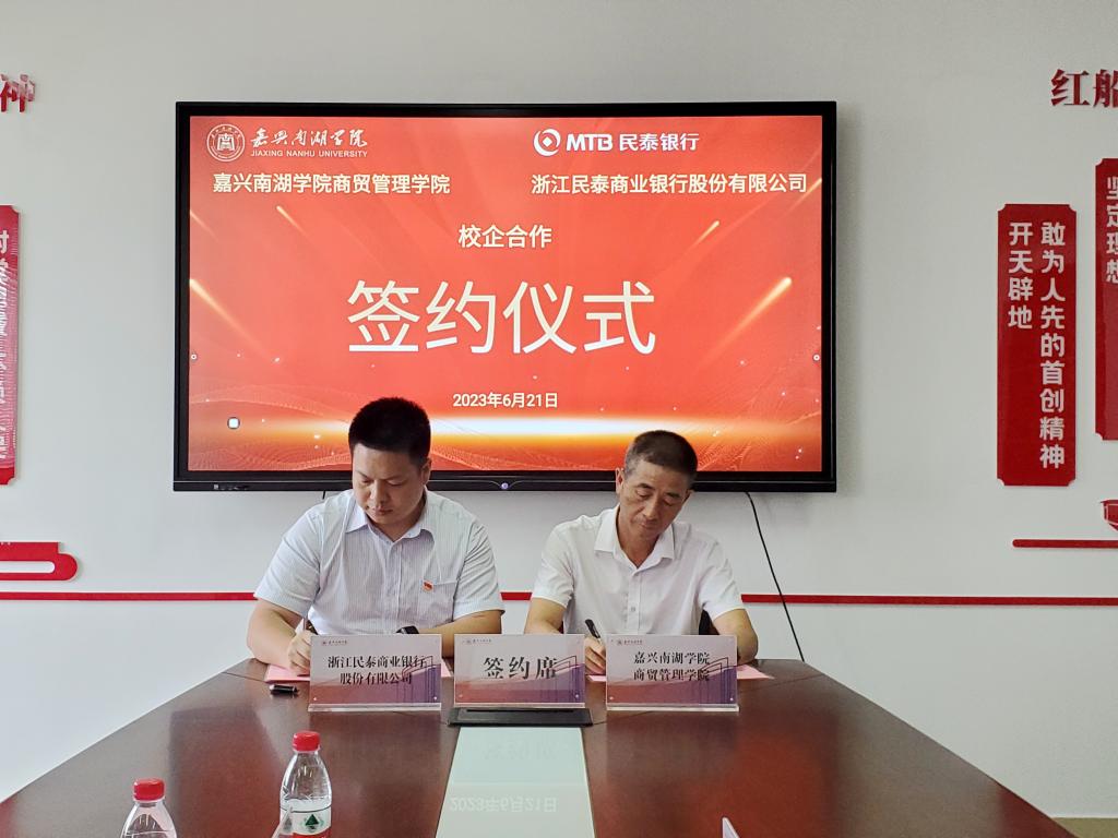 双方就合作内容进行深入交流和探讨,并达成一致意愿,通过充分利用各自资源优势,进行深度校企合作。随后由孔冬院长和刘柏廷副行长分别代表嘉兴南湖学院国产精品久久久久精品日日和浙江民泰商业银行签署了校企合作协议,开启国产精品久久久久精品日日与民泰银行合作发展的新篇章。