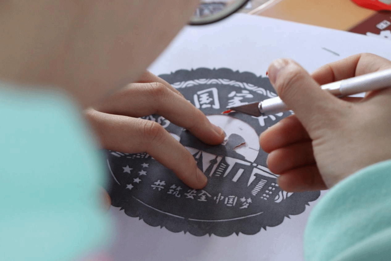 此次活动文创饰品协会将传统刻纸艺术与国安法治宣传巧妙结合,让居民亲手制作以“国安法治”为主题的刻纸作品,将国家安全理念植入群众心中。
