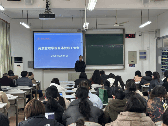 会上,学院院长孔冬作了新学期工作部署,他指出,2025年学院要紧紧围绕立德树人根本任务,以学校三个大学战略目标为指引,锚定具有国际视野、扎实基础、数智转型的高素质商科应用型人才培养目标,以三个聚焦为抓手,积极进行人才培养和课程体系的改革,加大开放和融合,在商院文化的浸润熏陶下,整体发力推动学院高质量发展。