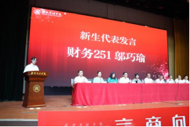 新生代表财务251班邬巧瑜同学话语铿锵有力,表达了积极迎接挑战、展现青春力量的决心。老生代表工商221班蔡金钰结合自身经历,建议学弟学妹明确目标、投身竞赛、学会担当。校友代表王宏结合职场经验,鼓励学生在人工智能重塑商业逻辑的今天,既要扎实学业,也要主动应变,永葆热爱,奉献社会。
