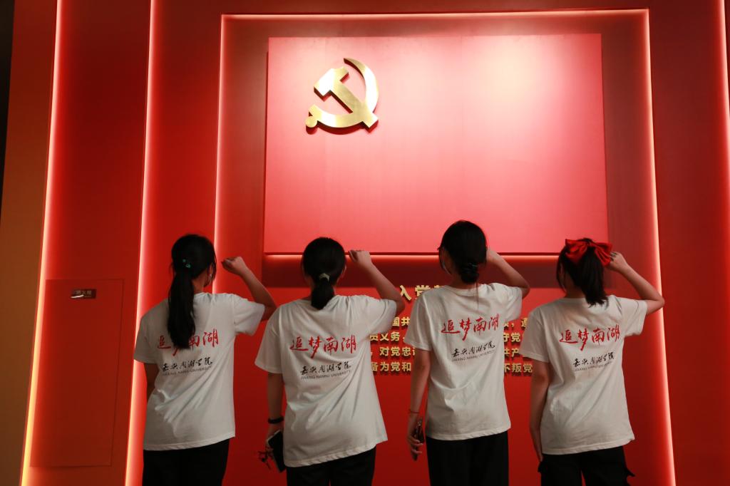 随后,同学们与老师一起徒步来到南湖革命纪念馆,在气势恢宏的序厅、庄严肃穆的展厅,通过一段段历史文字、一幅幅珍贵图片、一件件宝贵实物、一部部生动历史影像和视频,同学们深刻感受到了我党开天辟地、敢为人先的首创精神,坚定理想、百折不挠的奋斗精神,立党为公、忠诚为民的奉献精神;深刻理解了我党领导中国革命和建设事业是历史和人民的必然选择。