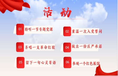 本次毕业生党员教育大会秉承着“忆初心,践使命,话未来”的精神,特设计了“聆听一次专题党课、重温一次入党誓词、齐唱一支革命红歌、做出一份庄严承诺、留下一句心灵寄语以及参观一个红色展馆”六大特色活动。