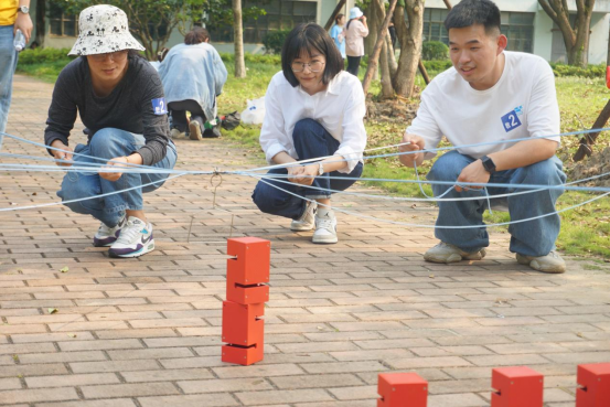 活动中,“合力筑塔”、“重走长征路”、“趣味垃圾分类”等趣味运动项目,将红色革命精神、绿色环保等元素与体育竞技精神相融合,达到寓教于乐的目的。比赛现场气氛浓烈,每一轮角逐都是一场精彩的盛宴。现场的参与者们都全身心地投入比赛,秉持“安全第一、友谊第一、勇争第一”的“三个第一”精神,拼搏竞技,其乐融融。各组成员积极沟通,共商策略,互帮互助,默契有加。