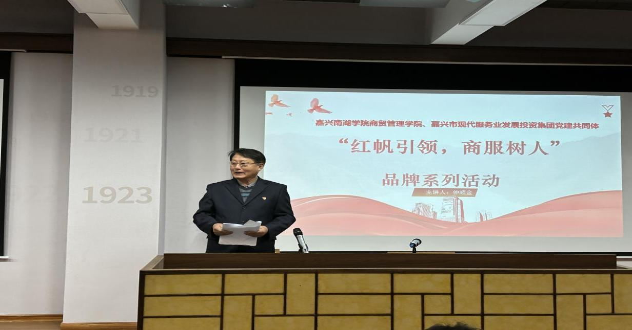 11月30日下午,由嘉兴南湖学院国产精品久久久久精品日日、嘉兴市现代服务业发展投资集团有限公司党建共同体举办的“红帆引领,商服树人”系列活动在嘉兴南湖学院图书馆报告厅举行。报告邀请全国五一劳动奖章、浙江省劳动模范、嘉兴市第二届道德模范获得者——嘉兴市现代服务业发展投资集团有限公司老党员仲顺金同志主讲。