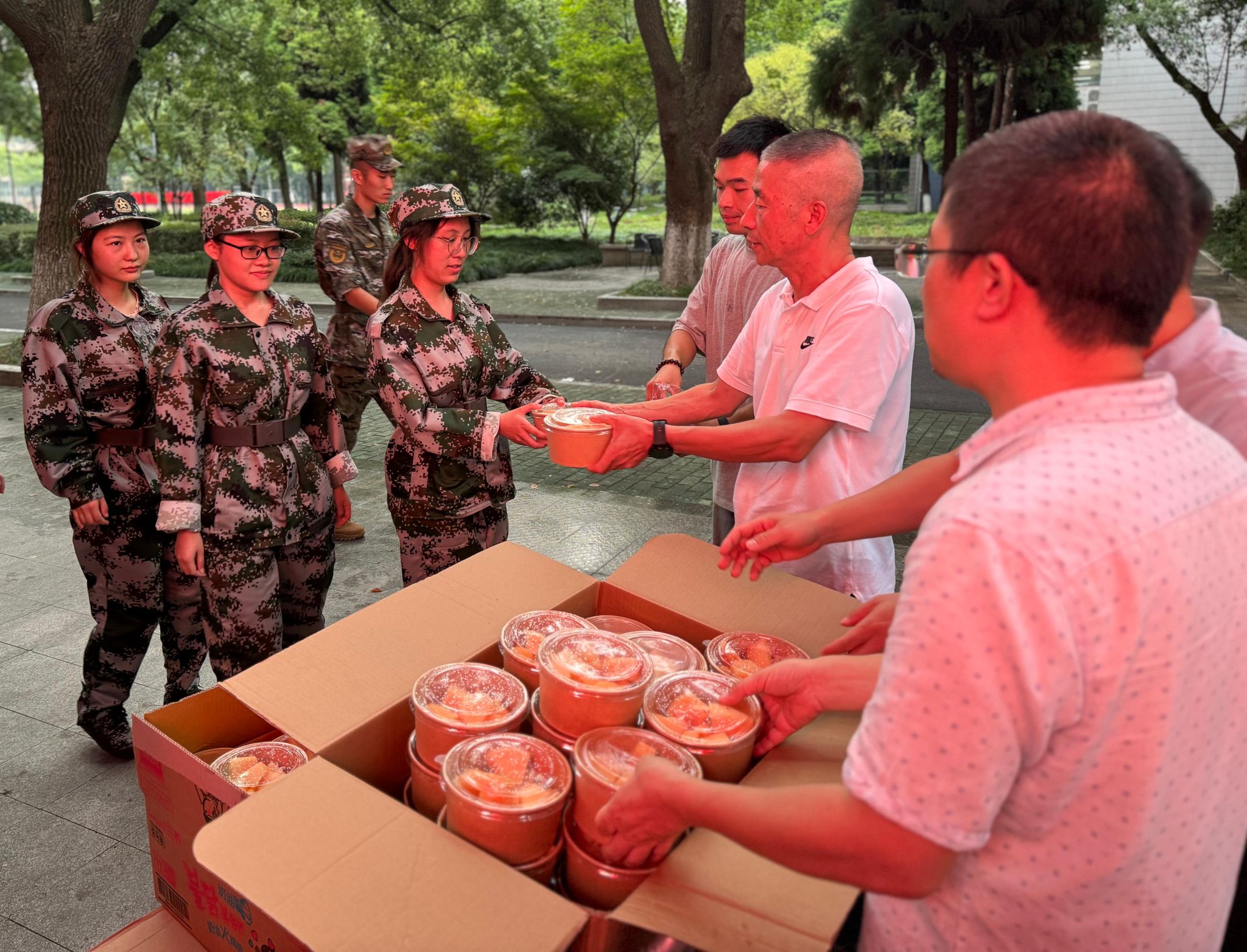 “西瓜好甜啦,没想到军训的时候还能吃到学院送来的水果,太开心了,谢谢老师”,来自2024级财务管理专业的马千寻同学说。