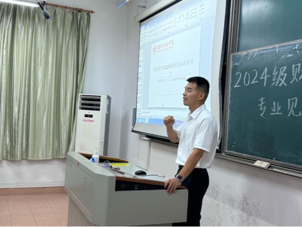 首先,蒋智杰老师对新生的到来表示热烈欢迎,并逐一介绍了专业内的教师和师资组成。之后,蒋智杰老师又为各位新生详细说明了财务管理专业的培养方案、就业方向等,嘱咐同学们在未来的四年学习生活中要保持勤奋好学的态度,要对专业学习予以重视。
