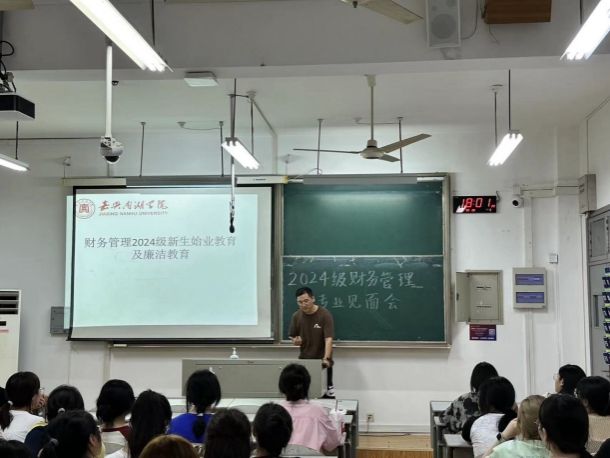 8月28日晚上,财务管理专业在教一403召开2024级新生专业见面会。财务管理专业全体教师及辅导员参加此次见面会,会议由财务管理专业负责人蒋智杰主持。
