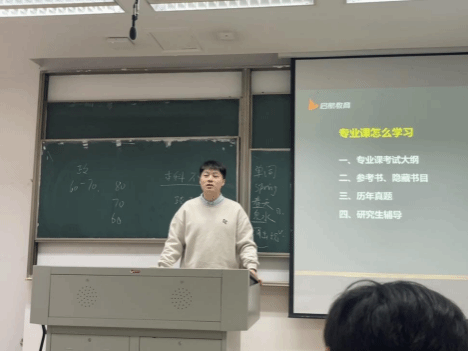 活动最后,由学院考研班主任付晓豪作总结发言,他以“专科逆袭985”“跨考之路不可怕”“从考研中学会学习”等三个考研上岸案例向同学们展示了如何通过考研这条路全面提升自己的综合素养。同学们听完后纷纷表示,会进一步明确目标,端正学习态度,在做好专业课学习的基础上,提早谋划备考工作。