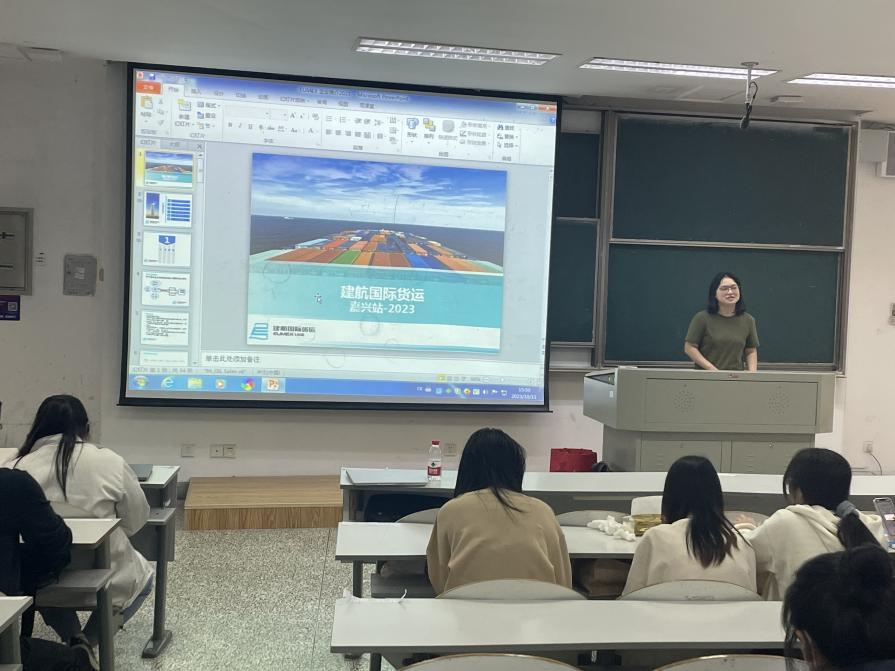 宁波建航国际货运代理有限公司,是经国家商务部批准的一级国际货运代理企业,并获得交通部批准的无船承运人(MOC-NV01059)资格。企业负责人对本公司的主营业务、薪资待遇、职业发展等方面向同学们进行详细介绍。企业具备系统的实习生培训体系、有竞争力的薪资体制和完备的保障福利,企业希望同学们能加入到公司团队中,实现个人与企业的共同发展。