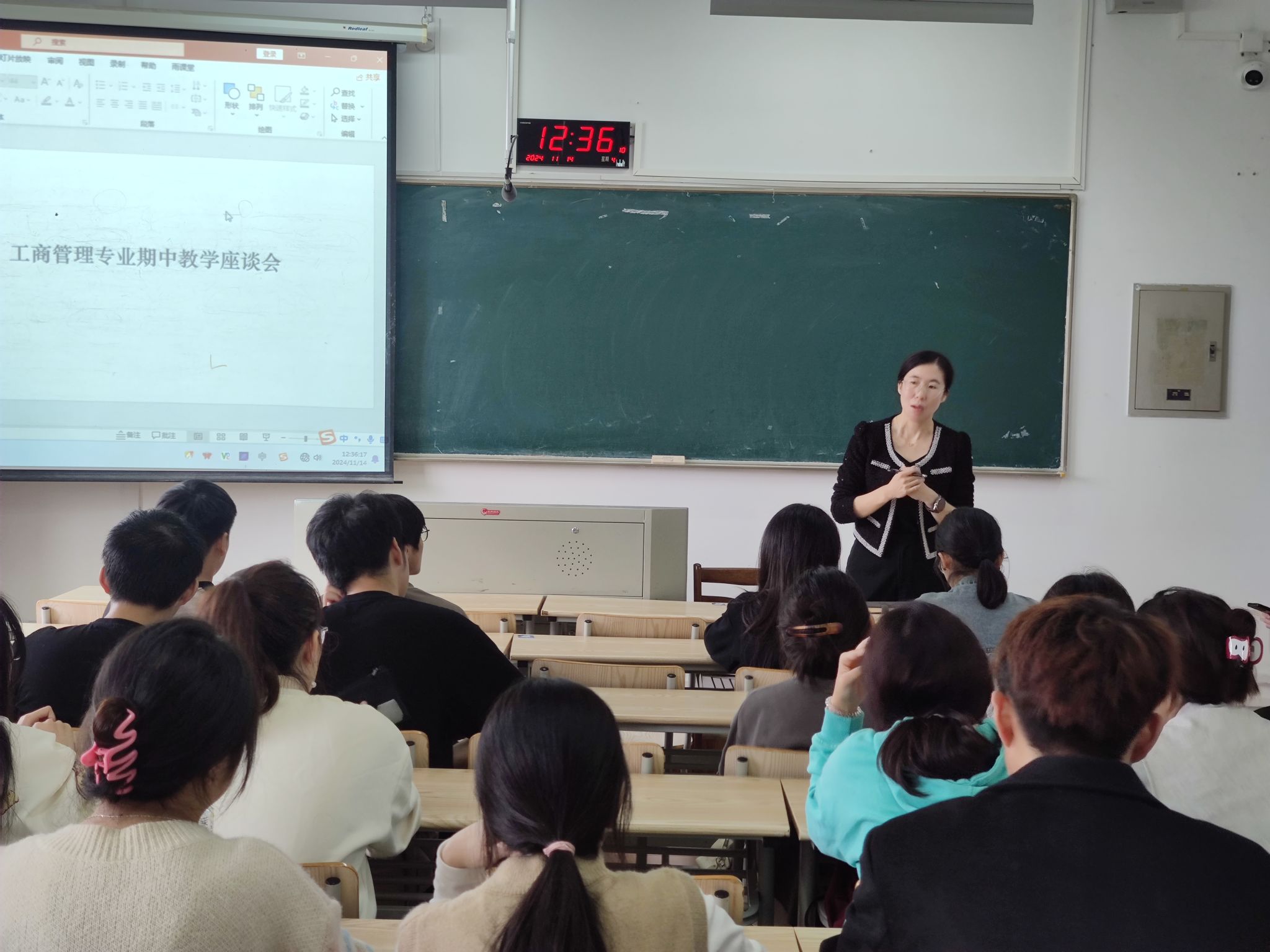 2024年11月15日,工商管理专业在教一409召开2024-2025第一学期期中座谈会。会议由徐静老师主持,工商管理专业专任教师、2022级、2023级、2024级的6个班近30名学生代表一同参加。
